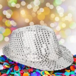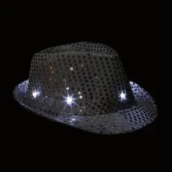 Mit diesem funkelnden Bogart Hut ziehen Sie alle Aufmerksamkeit auf sich! Nicht nur das der Glitzer Hut durch hunderte von kleinen Pailletten extrem funkelt und strahlt, der Discohut verfügt auch noch über eingebaute LEDs, die in 3 verschiedenen Geschwindigkeitsintervallen blinken können. Statten Sie sich und Ihre Freunde mit den Partyhüten aus, um die perfekte Aufmachung für den Junggesellenabschied zu haben. Auch zum Fasching, zu Silvester oder auf verschiedenen Mottoparties ist der Leuchthut ein geniales Accessoire, mit dem bewundernde Blicke garantiert sind!