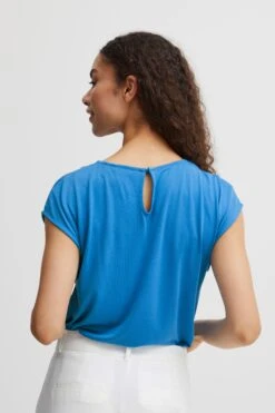 DETAILS & HIGHLIGHTS: T-Shirt mit kurzen Ärmeln, Rundhals-Ausschnitt mit Falten-Details, Knopf und Schlüsselloch hinten, lockerer Schnitt