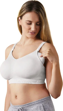 Der Body Silk Seamless Still-BH ist ein Klassiker der Marke Bravado. Das weiche und elastische Material lässt den BH wie eine zweite Haut auf Ihrem Körper sitzen. Unter Ihrer normalen Kleidung ist der nahtlose BH fast unsichtbar. Die herausnehmbaren, geformten Schaum-Cups dienen als Futter, um z.B. Brustwarzen oder Stilleinlagen zu kaschieren. Die Cups lassen sich komplett wegklappen und stören nicht beim Stillen.