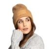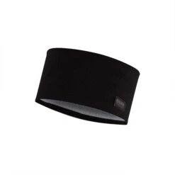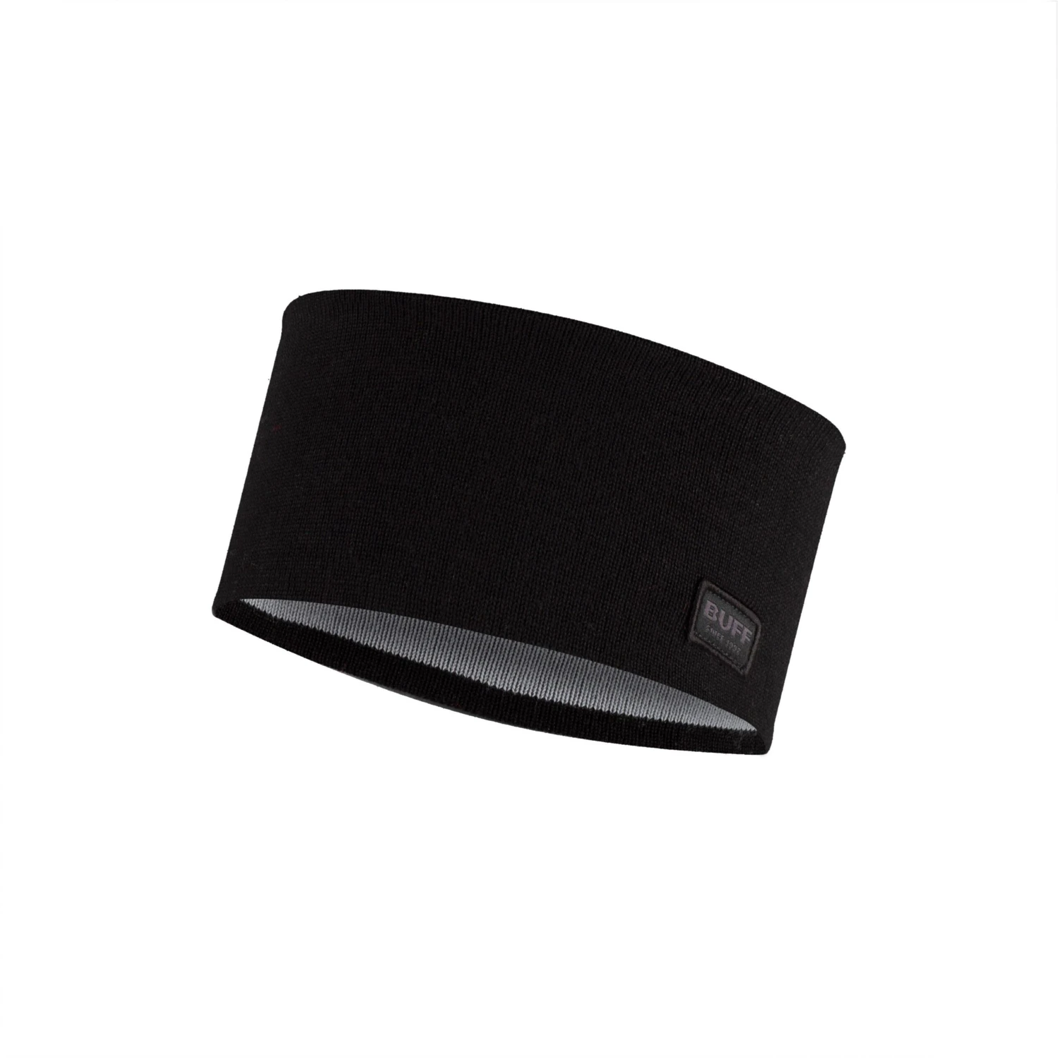 Sehr breites Stirnband aus feinem Strick; wärmende Eigenschaft; Label-Patch; Material 100% Polyacryl.