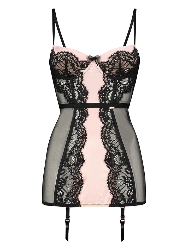 Bustier Mit Strumpfhalter In Schwarz/ Rosa