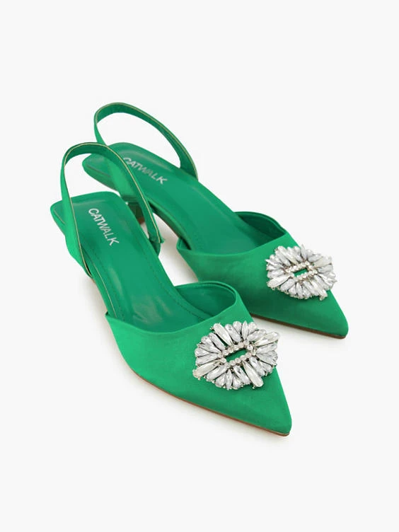 Slingpumps Marke: Catwalk Farbe: Grün Obermaterial: Textil Innenmaterial: Synthetik Außensohle: Synthetik Absatzhöhe: 5 cm