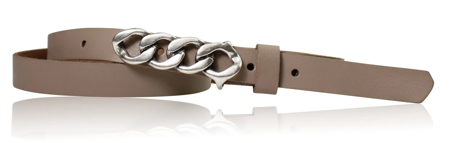 Schmaler Damengürtel mit einer hochmodischen und lang designten Koppelschnalle. Ein sehr effektvoller Gürtel, zu Kleidern wie auch zu Hosen tragbar. Der Lederriemen ist hochwertigem Rindsleder. In vielen tollen Farben verfügbar.