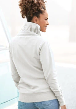 Sweatjacke »Alvis« von ELBSAND. Reißverschluss und hoher Stehkragen mit Logoprint. Seitliche Eingrifftaschen. Logo-Badge auf einem Ärmel. Breite Rippbündchen an Ärmeln und Saum. Länge ca. 66 cm. Aus weicher Sweatware.