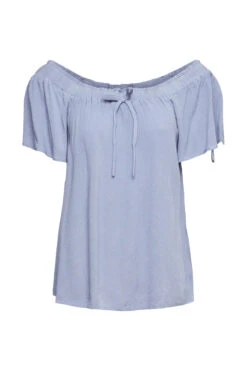 ESPRIT Crinkle-Bluse Mit Carmen-Ausschnitt Light Blue Lavender