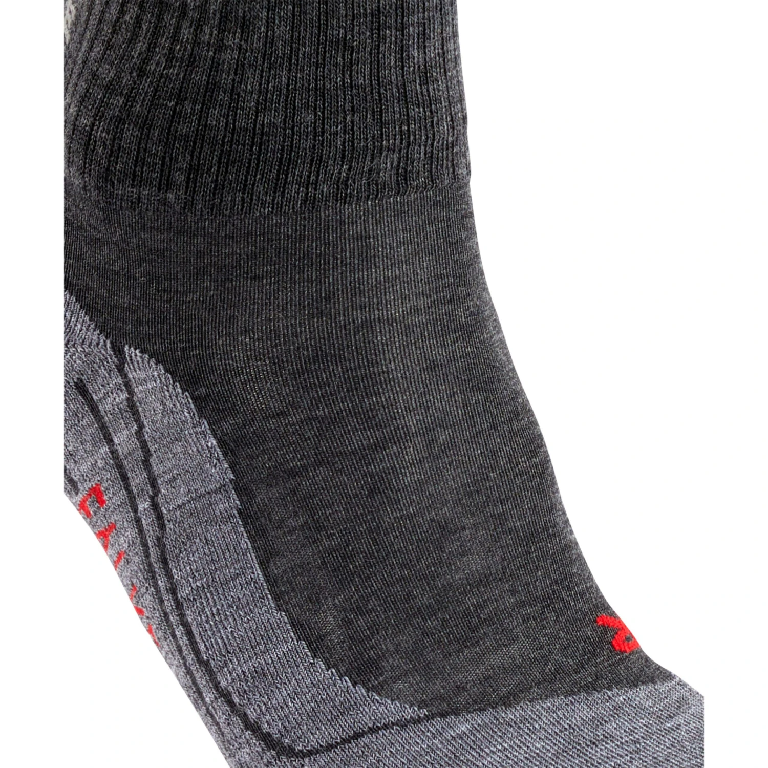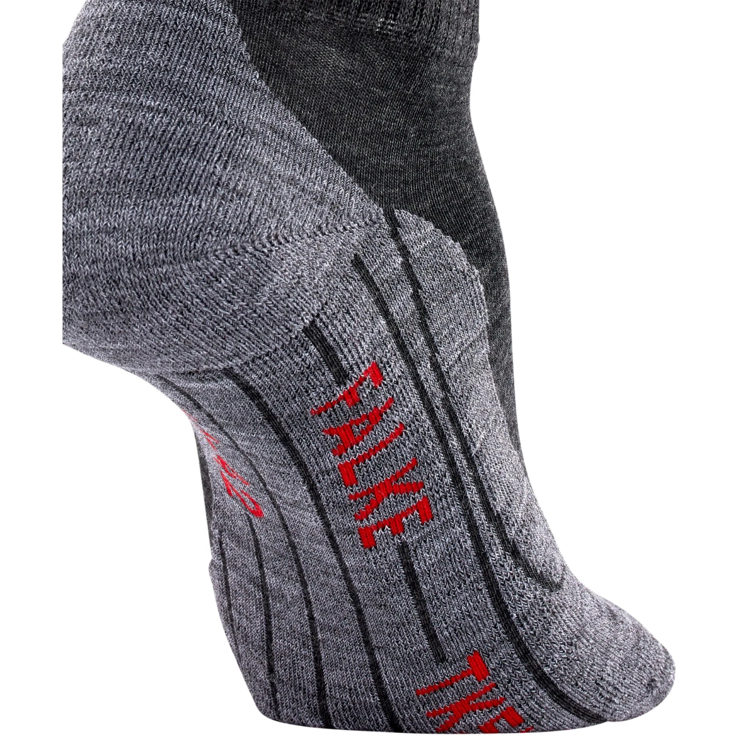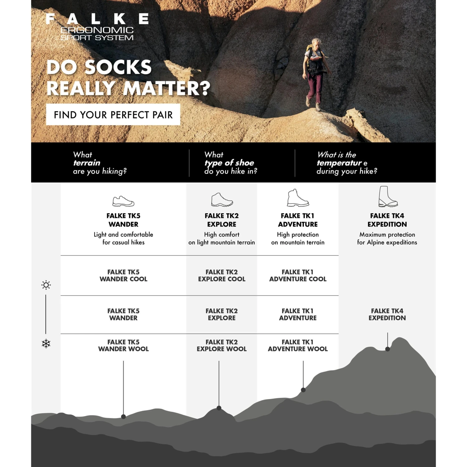 Wandersocken mit faltenfreiem Zehenbereich; Hochfersenpolster; anatomisches Fußgewölbe; anatomische Links- Rechtspassform; Material 40% Polypropylen, 35% Schurwolle, 25% Polyamid.