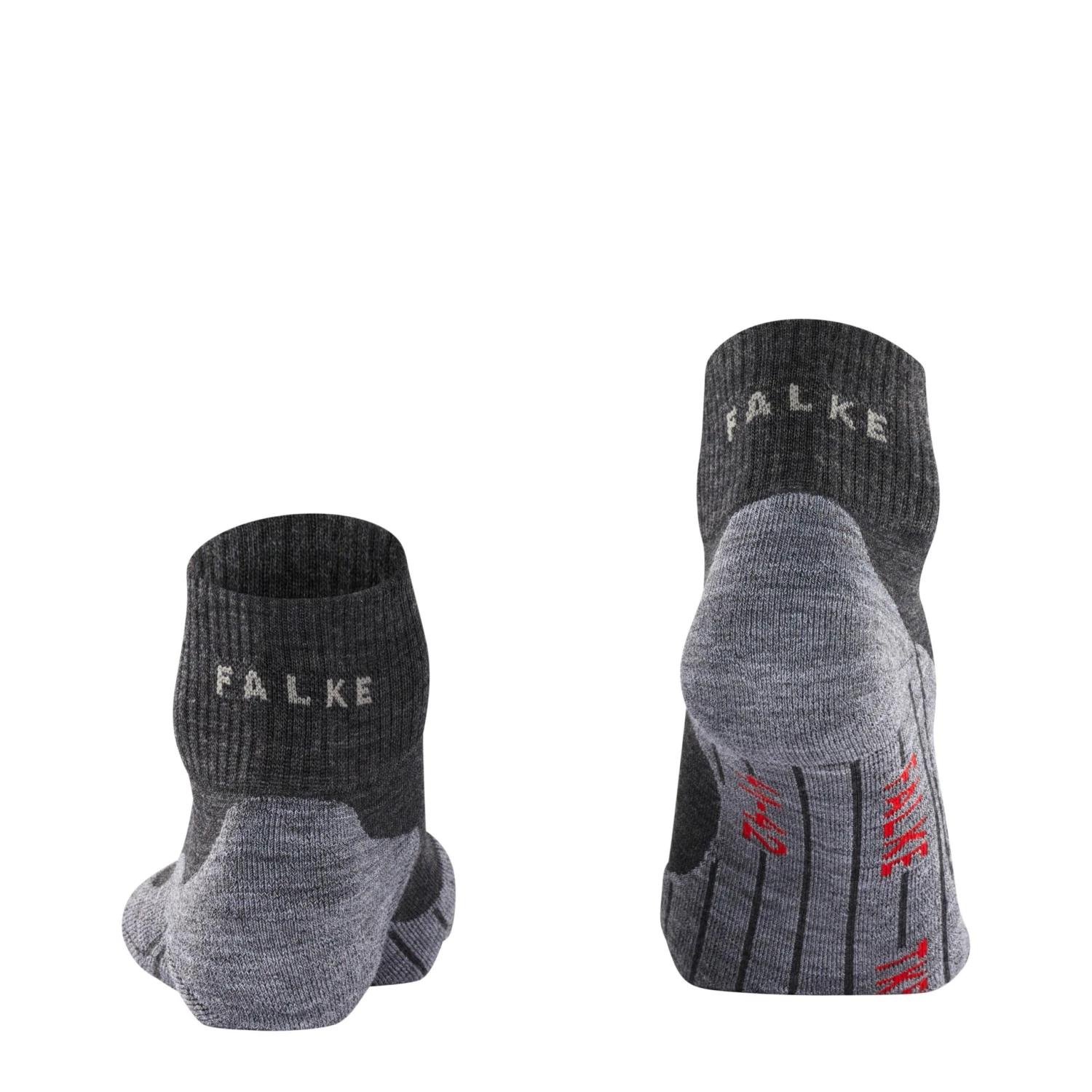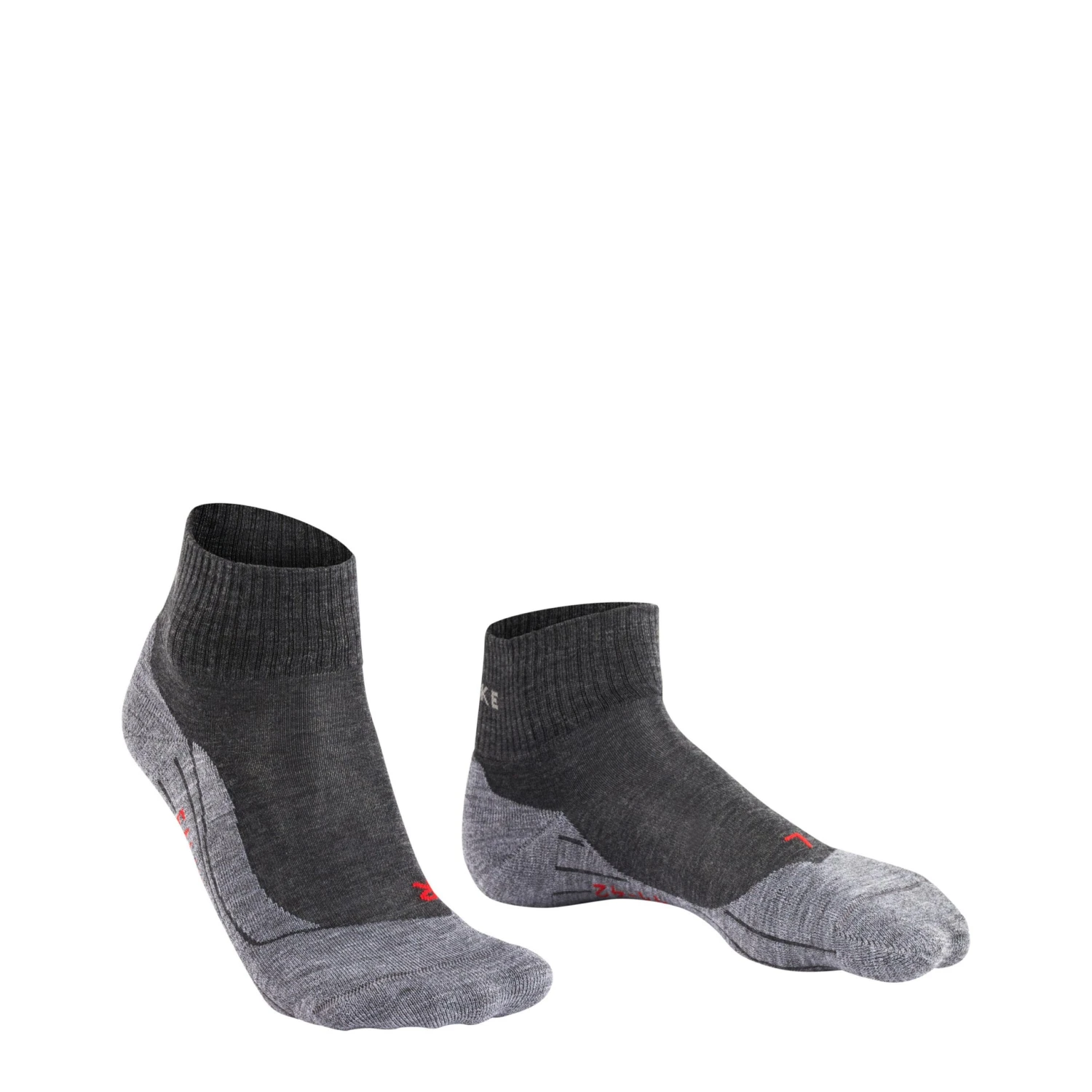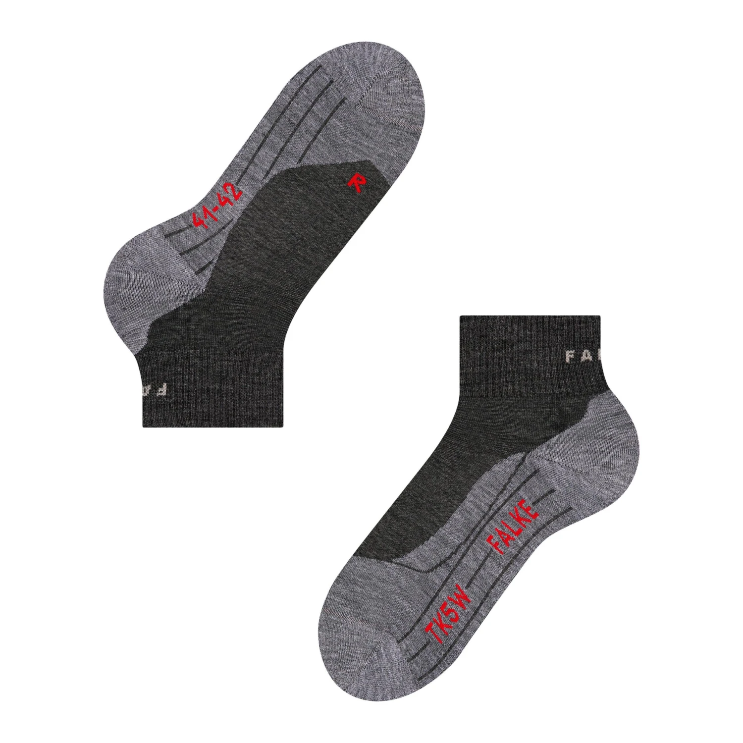 Wandersocken mit faltenfreiem Zehenbereich; Hochfersenpolster; anatomisches Fußgewölbe; anatomische Links- Rechtspassform; Material 40% Polypropylen, 35% Schurwolle, 25% Polyamid.