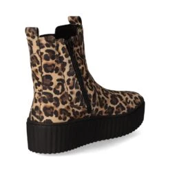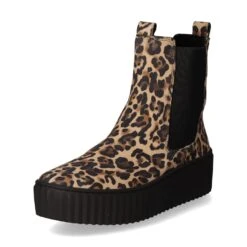 Gabor Damen Chelsea Boots/ Stiefeletten Braun Rauleder – Leo-Print – seitliche Elastikeinsätze am Schaft – modische Ziernähte – zwei Anziehlaschen – angenehmes Textilfutter – gepolsterte Wechseldecksohle – Profilsohle mit Plateau von ca. 3 cm