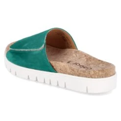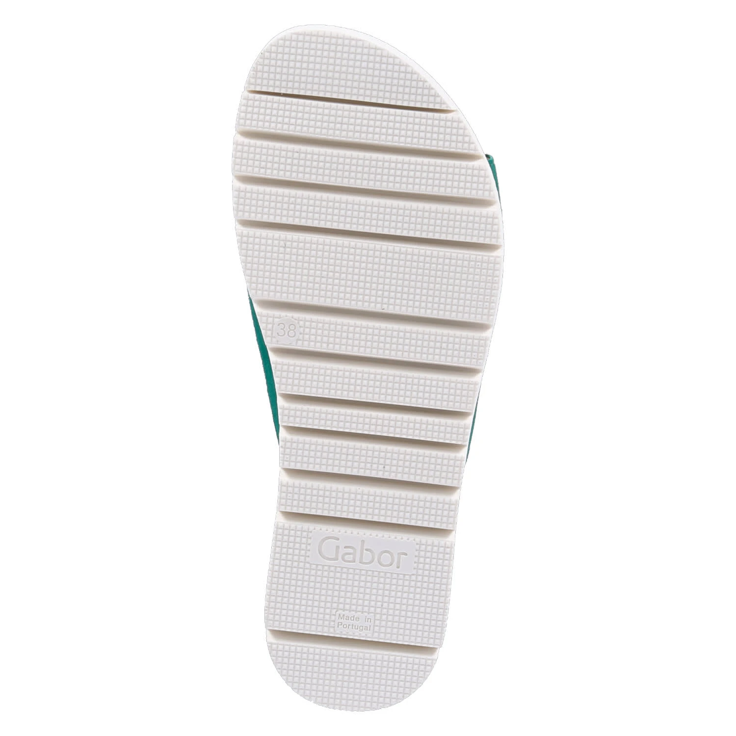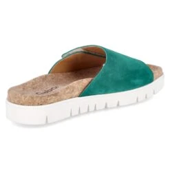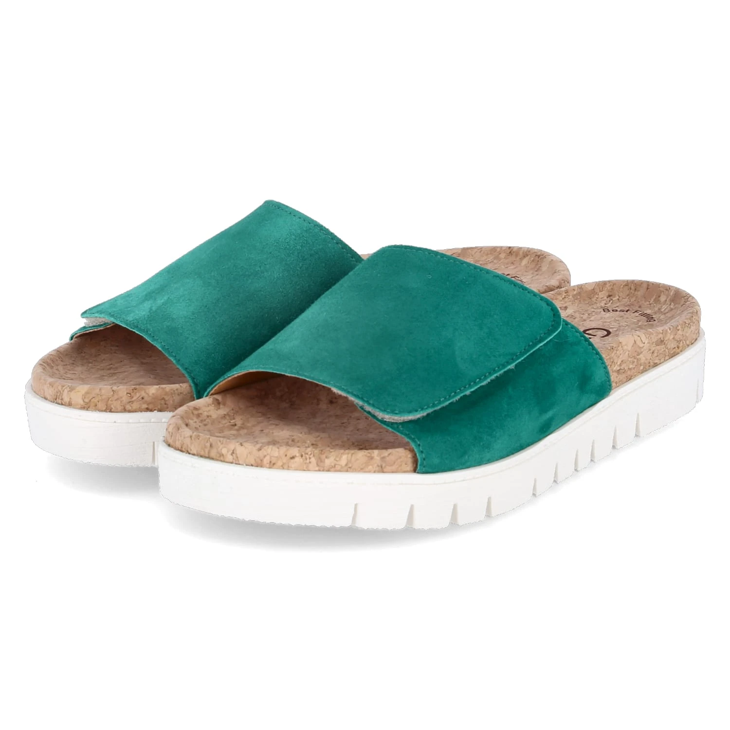 Gabor Damen Pantoletten Grün Rauleder – Klettverschluss – dämpfende, vorgeformte Kork -Decksohle – flexible, profilierte Laufsohle mit rutschhemmenden Eigenschaften