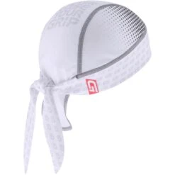 Atmungsaktives Bandana mit Musterung; hält den Schweiß von den Augen fern; kann am Hinterkopf gebunden werden; flache Nähte; ergonomische Form und auch zum Tragen unter dem Helm geeignet; Material 100% Polyester.
