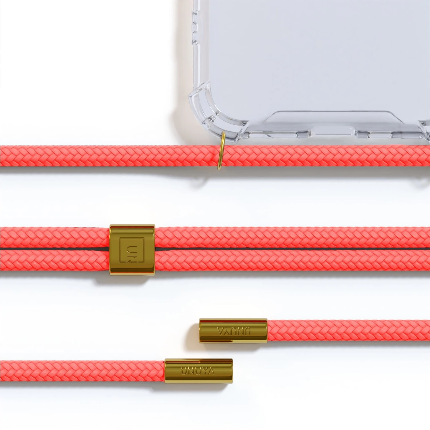 Ob im Großstadtdschungel, am Strand oder auf Foto-Safari: Mit unserer Smartphone-Kette „Coco Coral“ hast Du deine Hände frei und dein Handy immer griffbereit. Dank der Handykette im neonfarbigen Coral-Look entgeht dir kein Schnappschuss, keine Nachricht und kein Anruf. So lässt sich das Leben, bei einem Drink, in vollen Zügen genießen. Die goldenen Endkappen runden diese Kette ab.