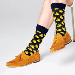 Noch cooler als cool: Rubber Duck Socken. Dein Lieblingsbadetier in fröhlichen Farben zaubert dir den ganzen Tag lang ein Lächeln ins Gesicht.. Hol Dir selbst ein Paar oder verschenke eines an jemanden, der Dir am Herzen liegt! Aus gekämmter Baumwolle gefertigt, sind diese Socken für langanhaltenden Komfort gemacht. Die Happy Socks Rubber Duck Sock.
