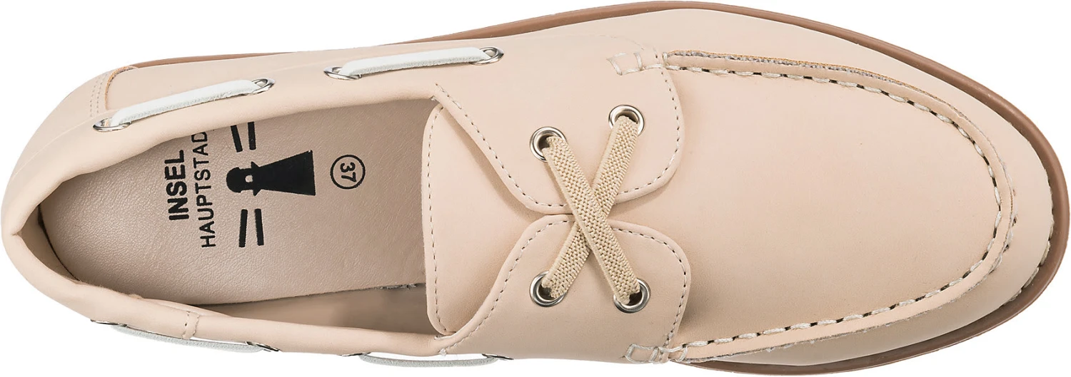 Auf Schritt und Tritt: Die Bootsschuhe der Marke Inselhauptstadt dürfen zu keiner Gelegenheit fehlen. Dieses Modell kommt ohne jeglichen Verschluss aus, sodass ganz bequem hineingeschlüpft werden kann.