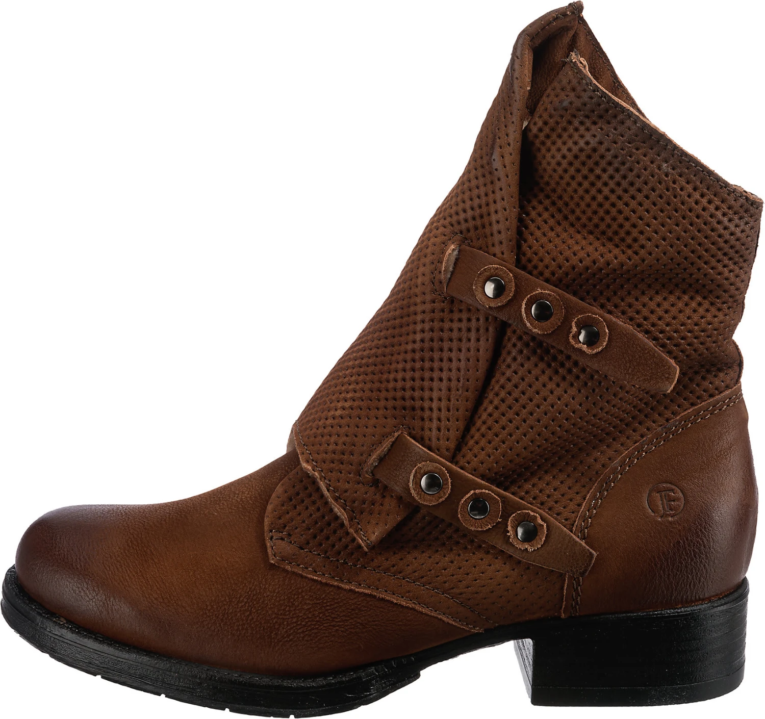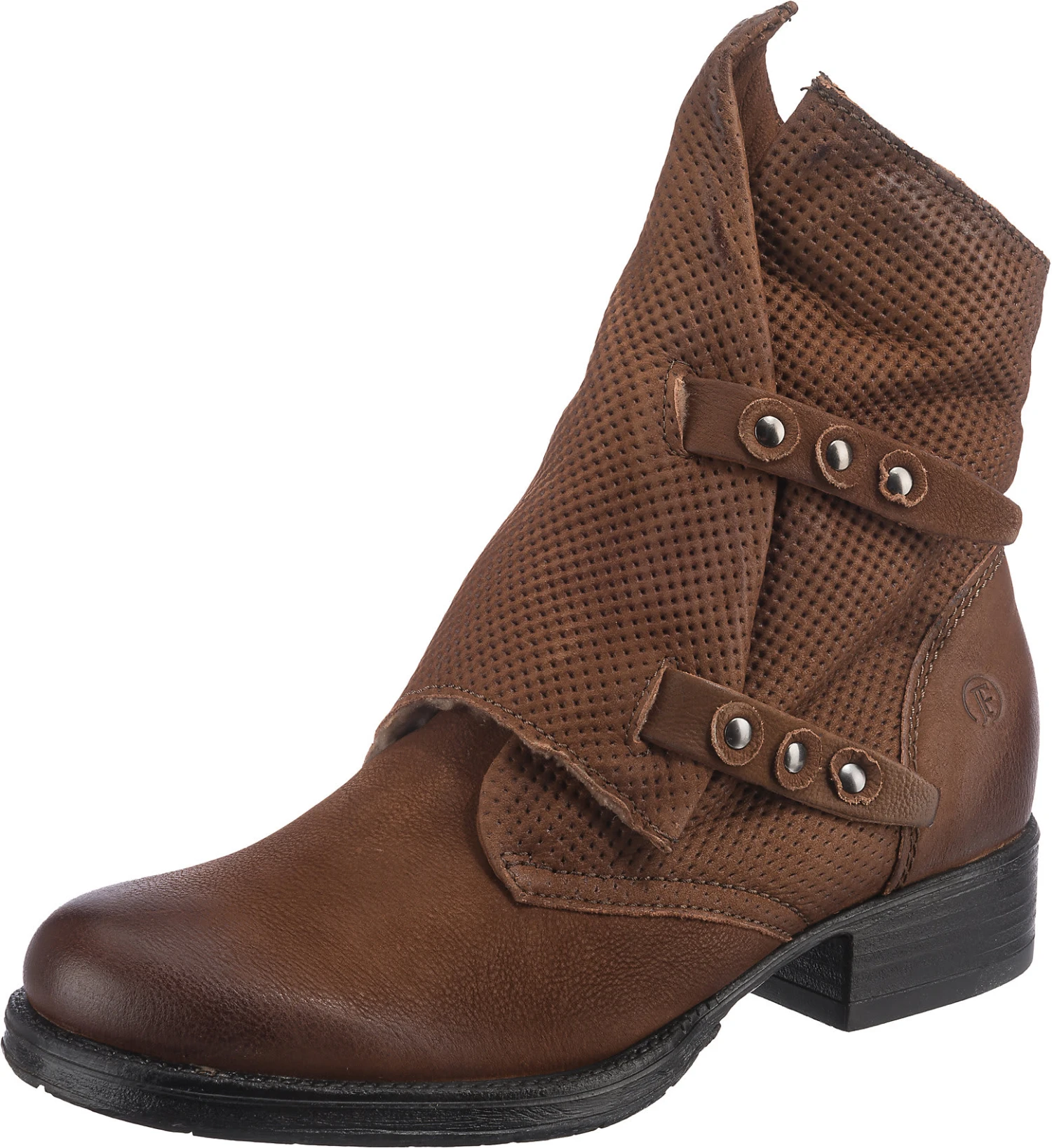 Ein unverwechselbarer Blickfang sind diese Biker Boots von der Marke JOLANA & FENENA. Das Obermaterial ist aus echtem Rindsleder. Der komfortable Blockabsatz sorgt für einen modischen Look. Diese Schuhe schließen per Reißverschluss. Das Paar ist mit einem angenehm warmen Futter versehen.