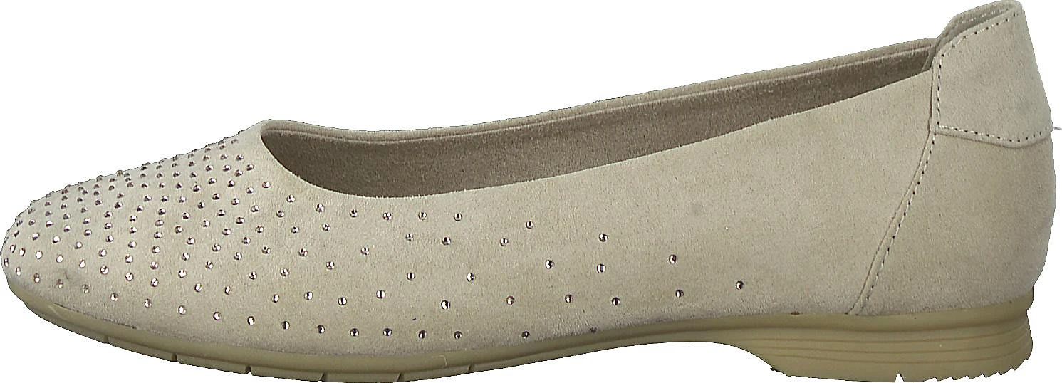 Die Ballerinas der Marke Jana sorgen stets für einen perfekten Auftritt. Die Aufmachung des Modells wird durch das textile Obermaterial ergänzt.