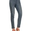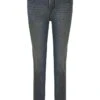 an Hüfte und Oberschenkel anliegend – gerade geschnitten – hoher Bund