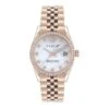 Hersteller: Kenneth Cole ModellNr : KC15056006 Zifferblatt: analog, Farbe: weiß (perlmutt) Gehäuse: goldfarbenes Edelstahlgehäuse poliert, Durchmesser ca. 3,8 cm (ohne Krone), Höhe ca. 0,9 cm Gehäuseboden: Edelstahl mit Herstellerlogo Armband: Edelstahlarmband, Breite: ca. 1,4 cm Länge der Uhr: ca. 21,5 cm Dornschließe Dichtheit: Wasserdicht 3 ATM (30 m) Funktionen / Anzeigen: Quarzwerk, gehärtetes Mineralglas, Stunden – Minuten – Sekundenanzeige