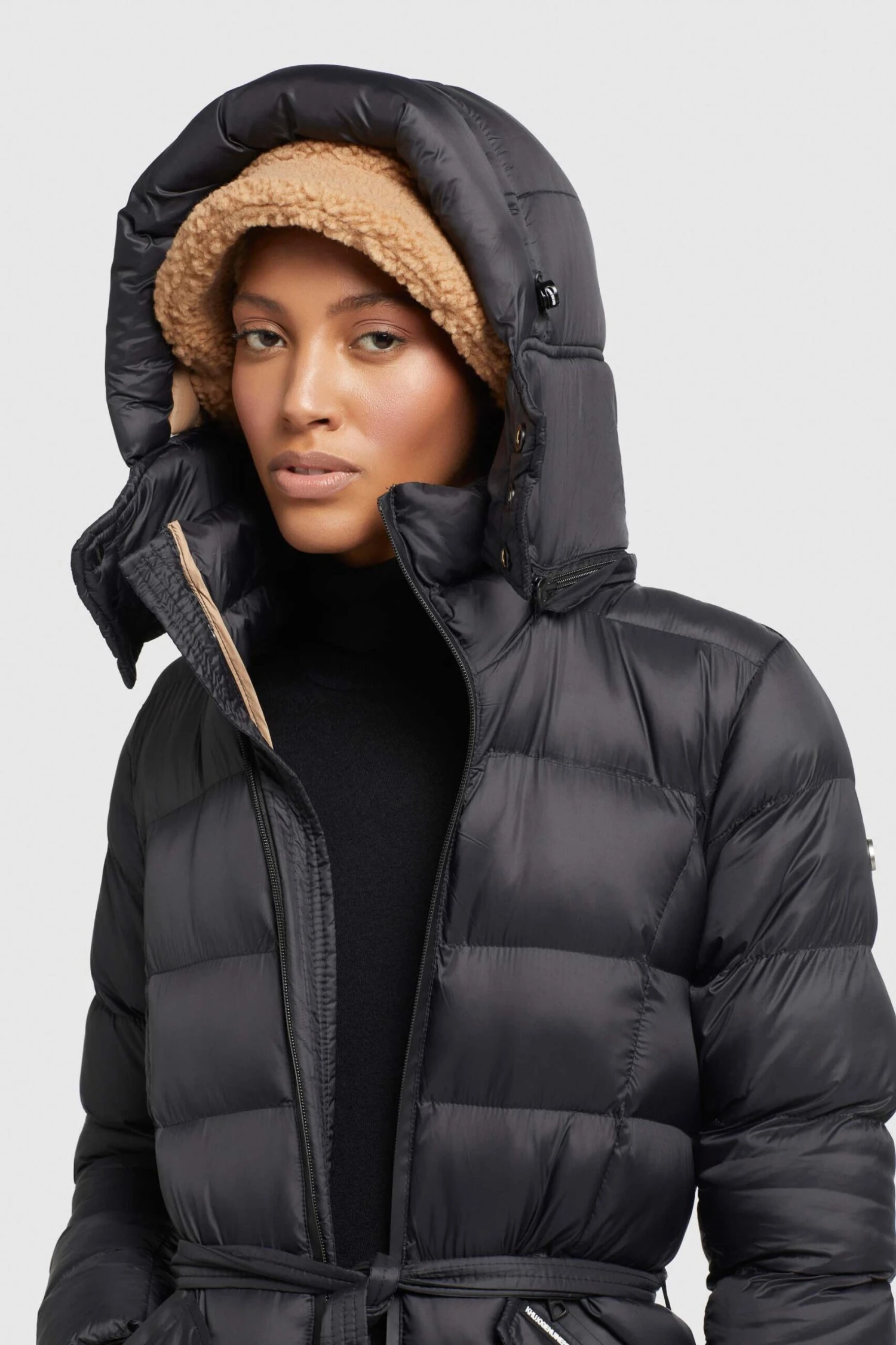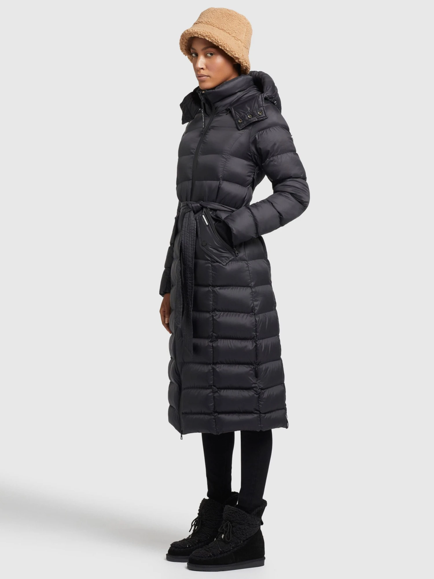 Mit einem abnehmbaren Stoffgürtel an der Taille lässt sich der khujo Mantel OLALLA SOFT figurbetont stylen. Dieser Steppmantel ist wadenlang geschnitten und aus einem leicht glänzenden Material gefertigt. Eine hoch schließende und abnehmbare Kapuze mit elastischem Kordelzug, elastische Bündchen am Ärmelfutter, Reißverschlusstaschen sowie ein Zwei-Wege-Reißverschluss mit einer wasserabweisenden Gummierung und Taschenbeutel mit Fleece runden das Design bei dieser Winterjacke gelungen ab.