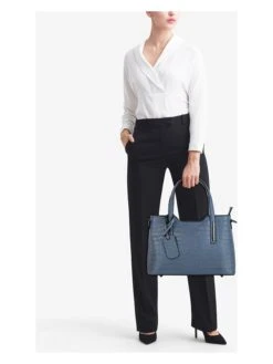 Leder-Henkeltasche In Blau – (B)32 X (H)22 X (T)12 Cm