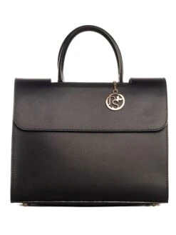Leder-Henkeltasche In Schwarz – (B)30 X (H)23 X (T)13 Cm
