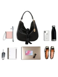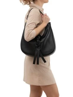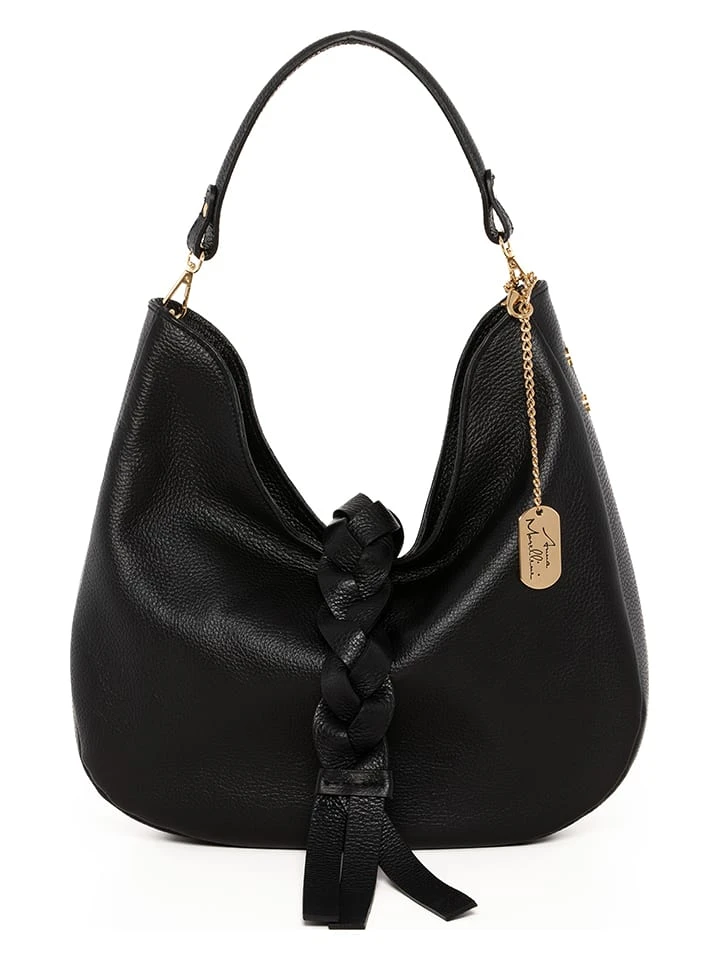 Leder-Schultertasche In Schwarz – (B)36 X (H)23 X (T)12 Cm