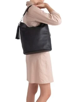 Leder-Schultertasche „Sabaudia“ In Schwarz – (B)26 X (H)28 X (T)12 Cm