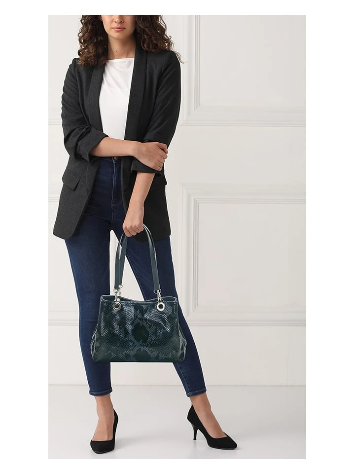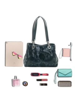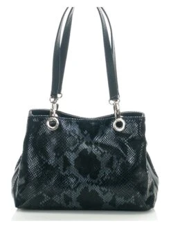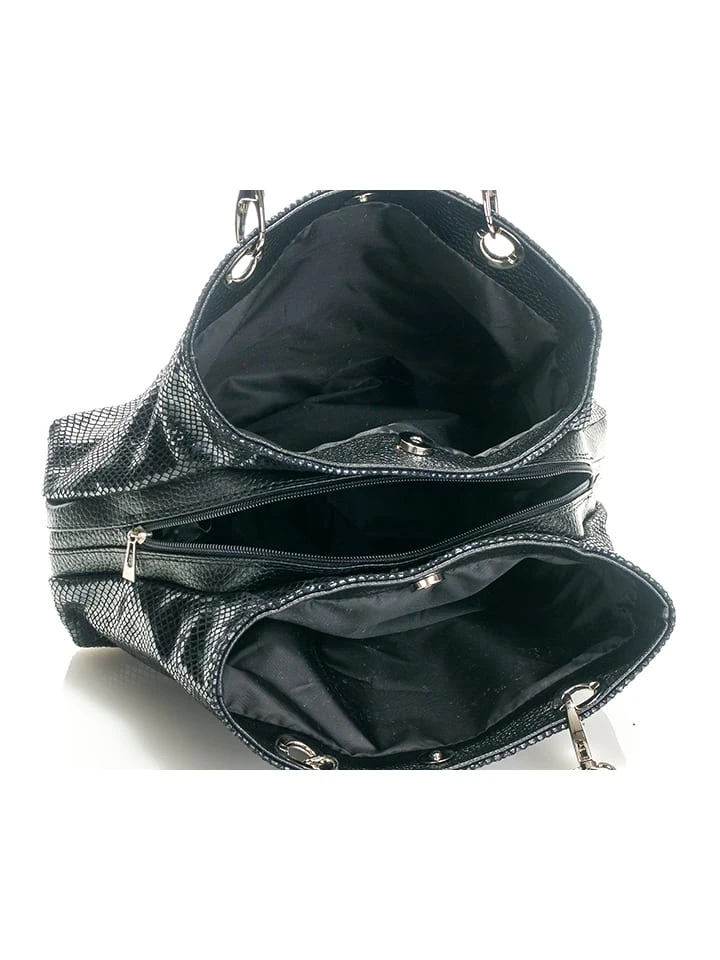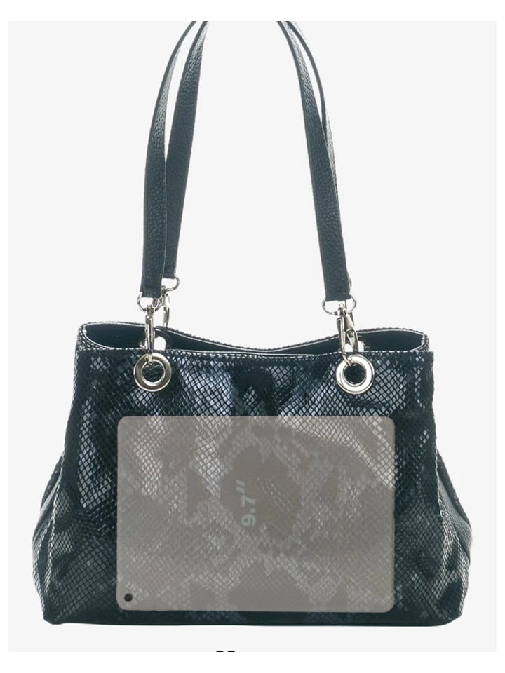 Leder-Schultertasche „Sorbo“ In Schwarz/ Blau – (B)30 X (H)27 X (T)12 Cm