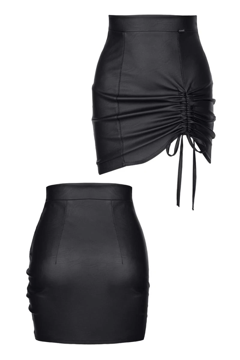 Minirock mit Tunnelzug vorne. Aus elastischem Kunstleder in Schwarz.