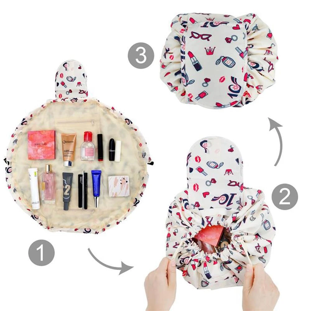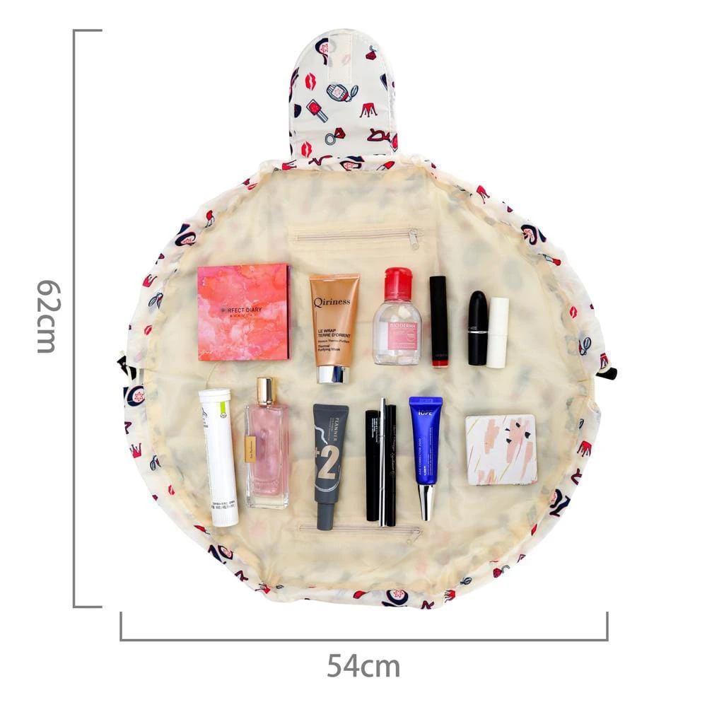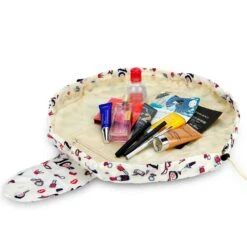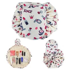 Runder Kulturbeutel mit Kordelzug zum Zusammenziehen mit 2 inneren Reißverschlussfächern – Reise Etui Organizer Unser ausklappbare Make-Up Beutel ist die perfekte Lösung um schnell Ordnung zu machen! Es ist der perfekte Begleiter für unterwegs. Profitieren Sie von der Vielseitigkeit dieses Beauty Etuis! – Schnell aufgeräumt