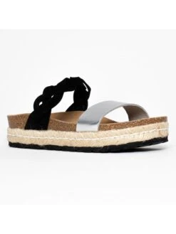 Pantoletten „Kapiti“ In Schwarz/ Silber