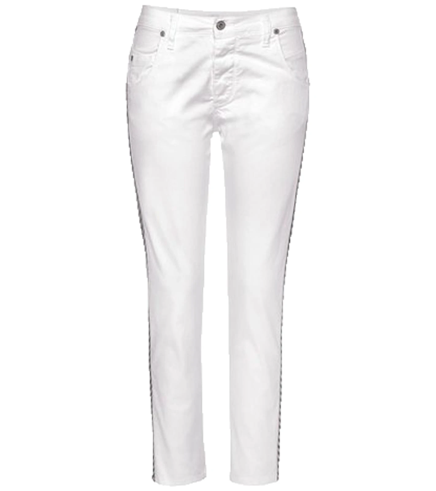 PLEASE P85 Jeans angesagte Damen Denim-Hose mit gemusterten Galonstreifen Weiß
