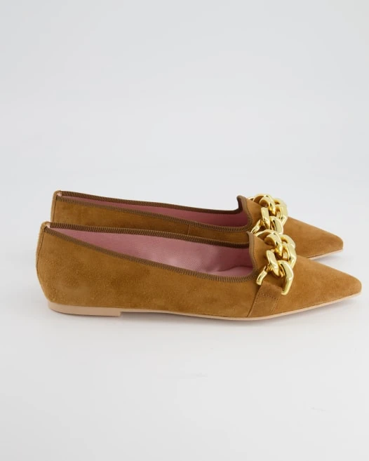 # Ballerina von Pretty BallerinasSie werden diese Ballerinas von Pretty Ballerinas für Damen lieben! Versprochen! Als Obermaterial wird Veloursleder verarbeitet, was besonders elegant aussieht. Das Innenfutter ist aus Textil. Ihre Farbe ist klassisches Braun. Dieses Modell hat keinen Absatz.Ein wichtiges Merkmal des Ballerinas ist auch:* goldene VorderblattspangeWir bieten Ihnen die beste Qualität und eine schnelle Lieferung. Bestellen Sie jetzt!