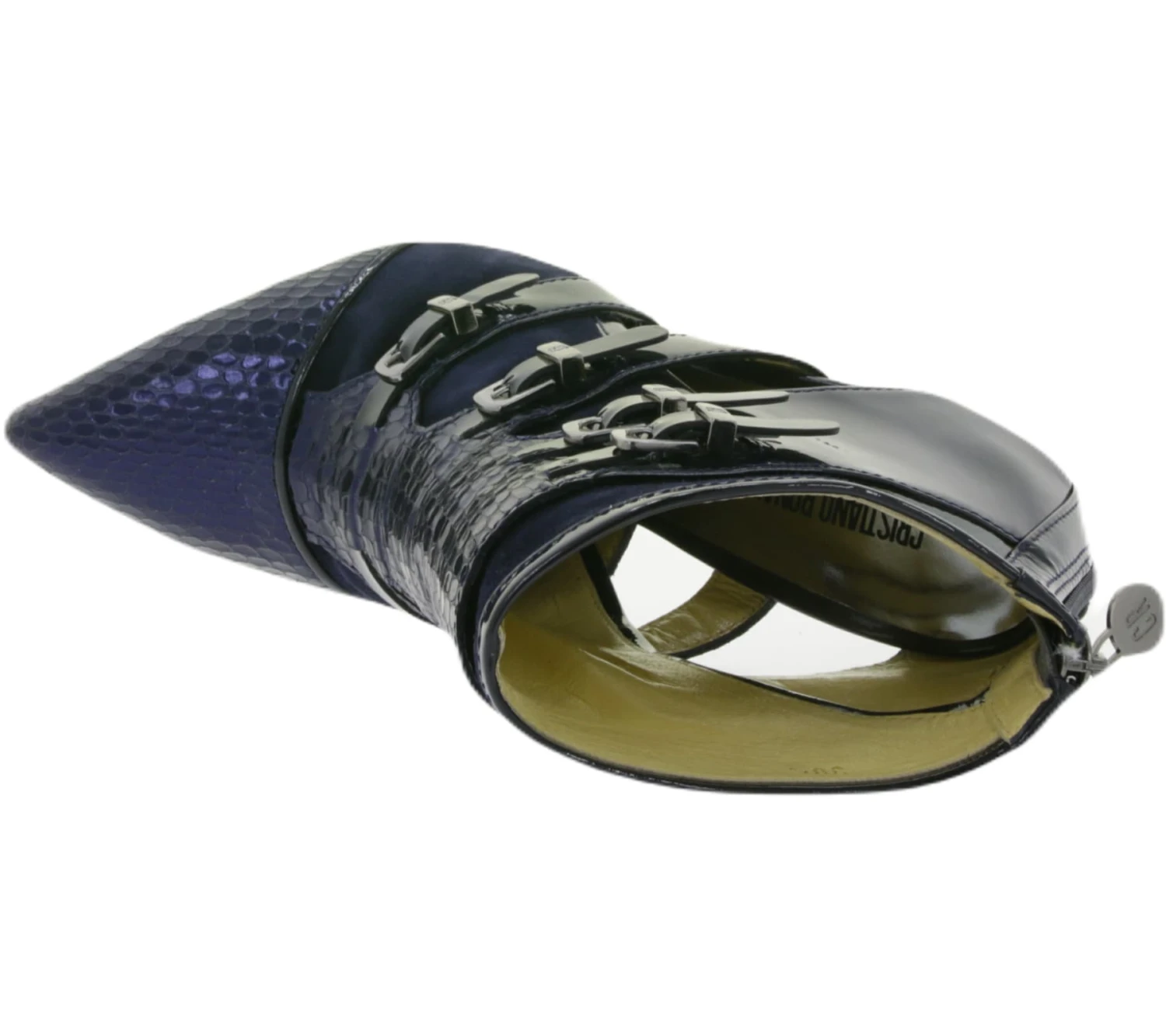 CR7 CRISTIANO RONALDO Tango Damen Echtleder Hochfront-Pumps in Reptilien-Look Made in Portugal Dunkel-Blau