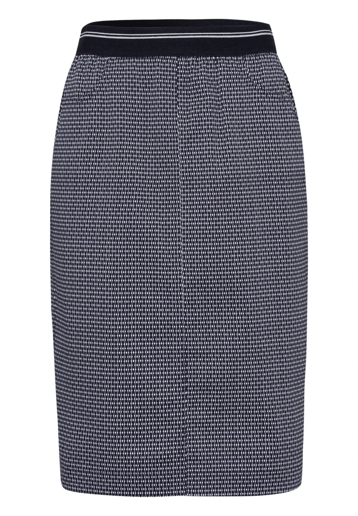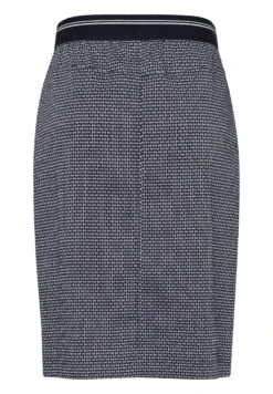 Inspirierend und im lässigen Look präsentiert sich der Rock zum Schlüpfen. Er zeigt sich im femininen Minimalmuster und mit elastischem Bund. Dieser ist ton-in-ton und mit einem Kontraststreifen gehalten. Die Eingrifftaschen geben dem Style einen zusätzlichen coolen Touch. In knieumspielender Länge.