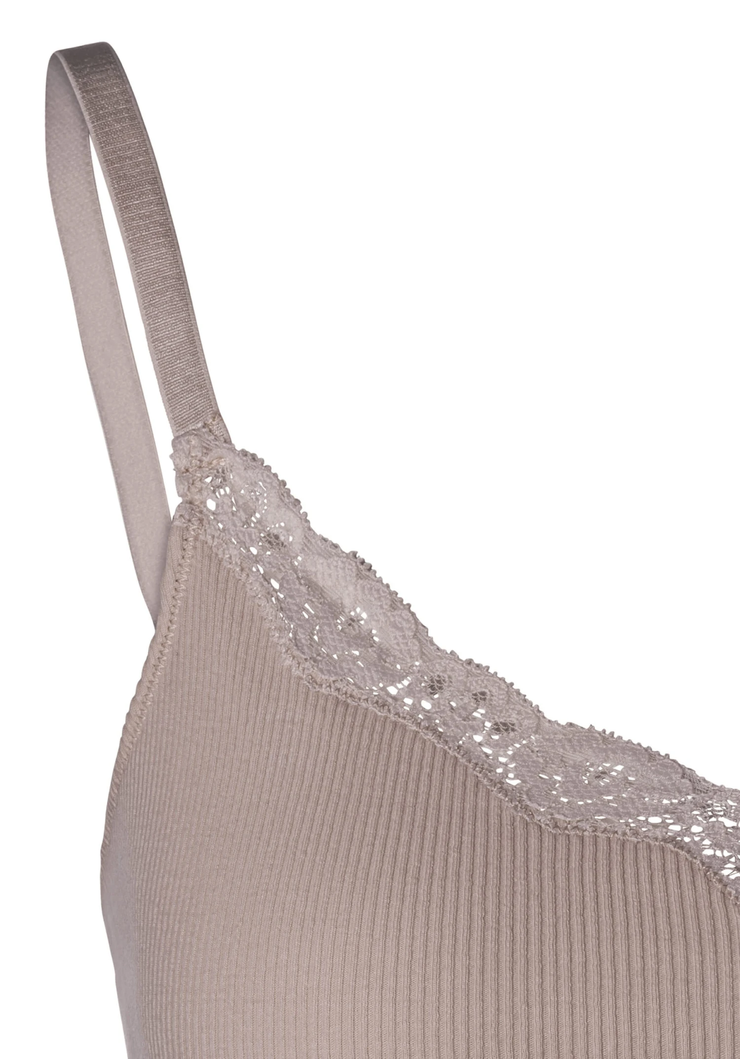 s.Oliver Bustier: zarte, florale Spitze am V-Ausschnitt. Verstellbare Träger. Cup A/B geeignet. Aus 95% Baumwolle, 5% Elasthan. Spitze: 90% Polyamid, 10% Elasthan.