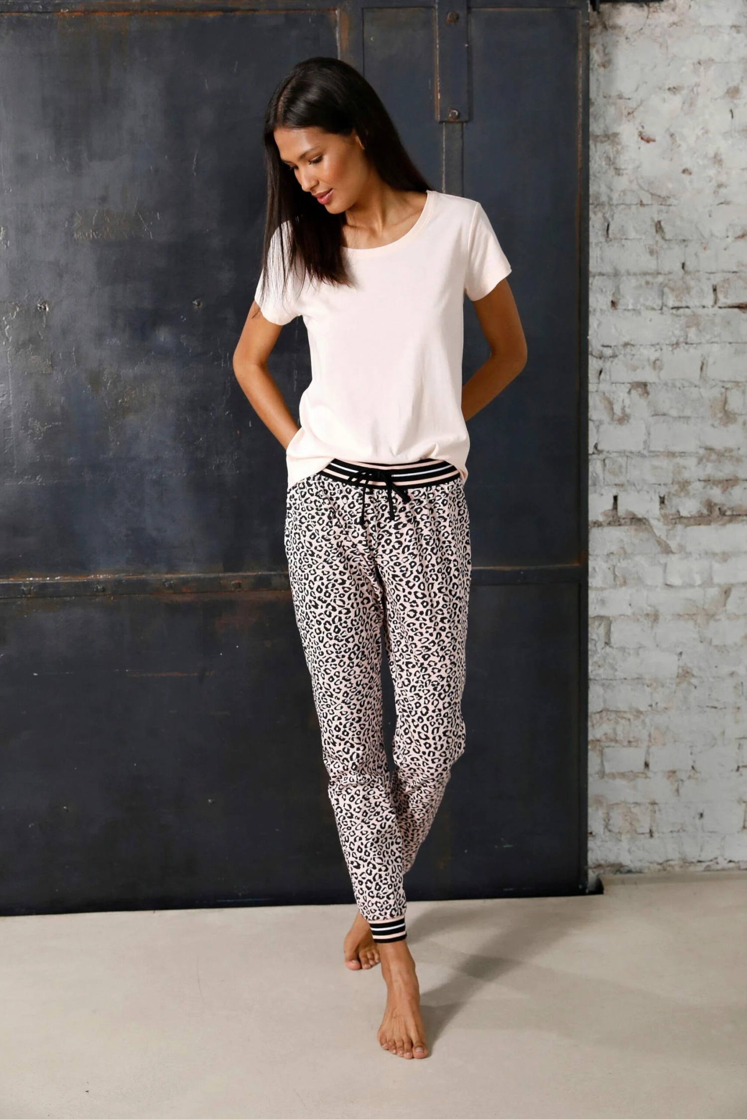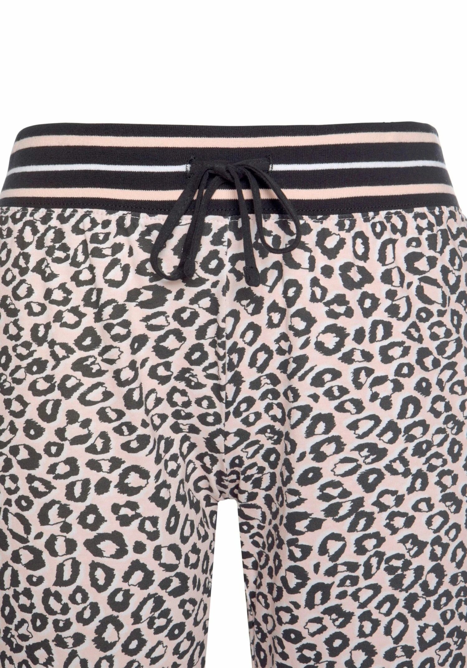 Schöner 2-teiliger Pyjama mit Leo-Print. Kurzarmshirt mit klassischem Rundhals. Lange Hose mit elastischem Bund und Rippstrickbündchen am Beinsaum. Angenehm weiche Baumwollqualität.