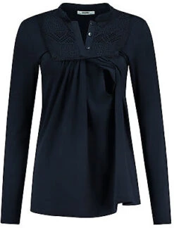 Das LOVE2WAIT Stilllangarmshirt begeistert mit dem dekorativen Häkelspitzen-Bereich vorne am Ausschnitt. Die hübschen darunter liegenden Faltungen sorgen für einen eleganten Akzent sowie für einen komfortablen Sitz am Bauch.