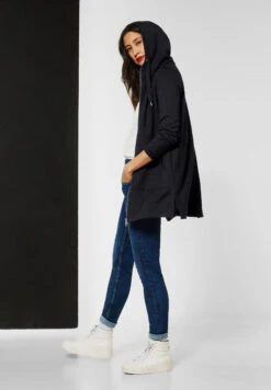 STREET ONE Lange Loose Fit Sweatjacke Black