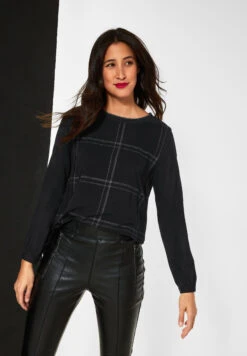 Blusen-Liebling! Die Bluse von Street One begeistert im coolen Mustermix, mit Karomuster auf der Vorderseite und einer Rückseite und Ärmel in Unifarbe. Dank schimmernder Details am gerippten Rundhalsausschnitt wird dieser zum tollen Hingucker. In softer Viskose trägt sich die Bluse locker-leicht und durch das Coating bekommt sie eine tolle Haptik. Bluse Karomuster Coating Rundhalsausschnitt Maße bei EU-Größe 38 ca.: Länge 65 cm, Brust 108 cm, Saumweite 114 cm Material: 100% Viskose Pflegehinweise: 30°C Pflegeleicht, Nicht bleichen, Nicht im Wäschetrockner trocknen, Mäßig heiß bügeln, Behandlung in Reinigungsmaschine mit folgenden Lösemitteln: Perchlorethylen, Kohlenwasserstoffe