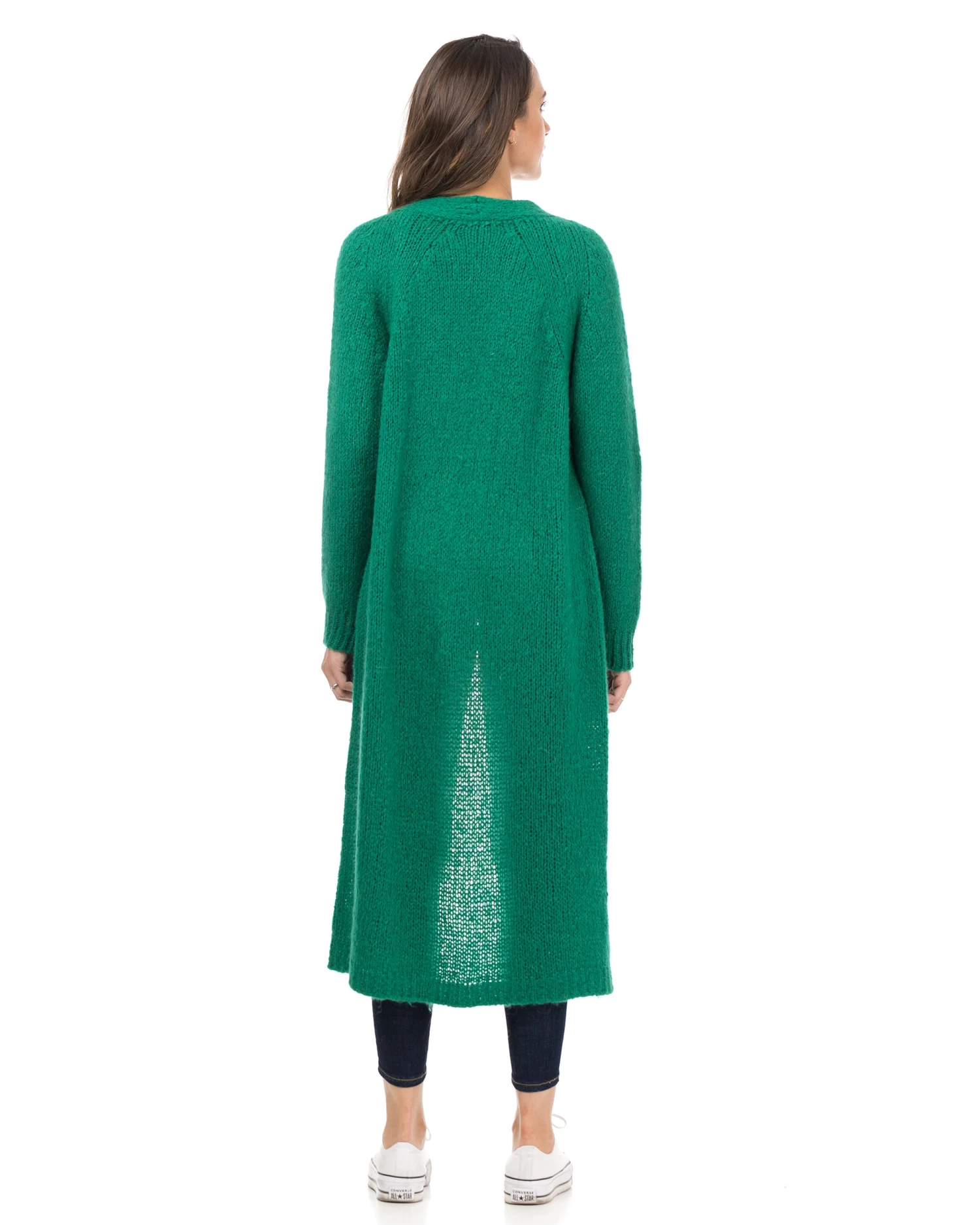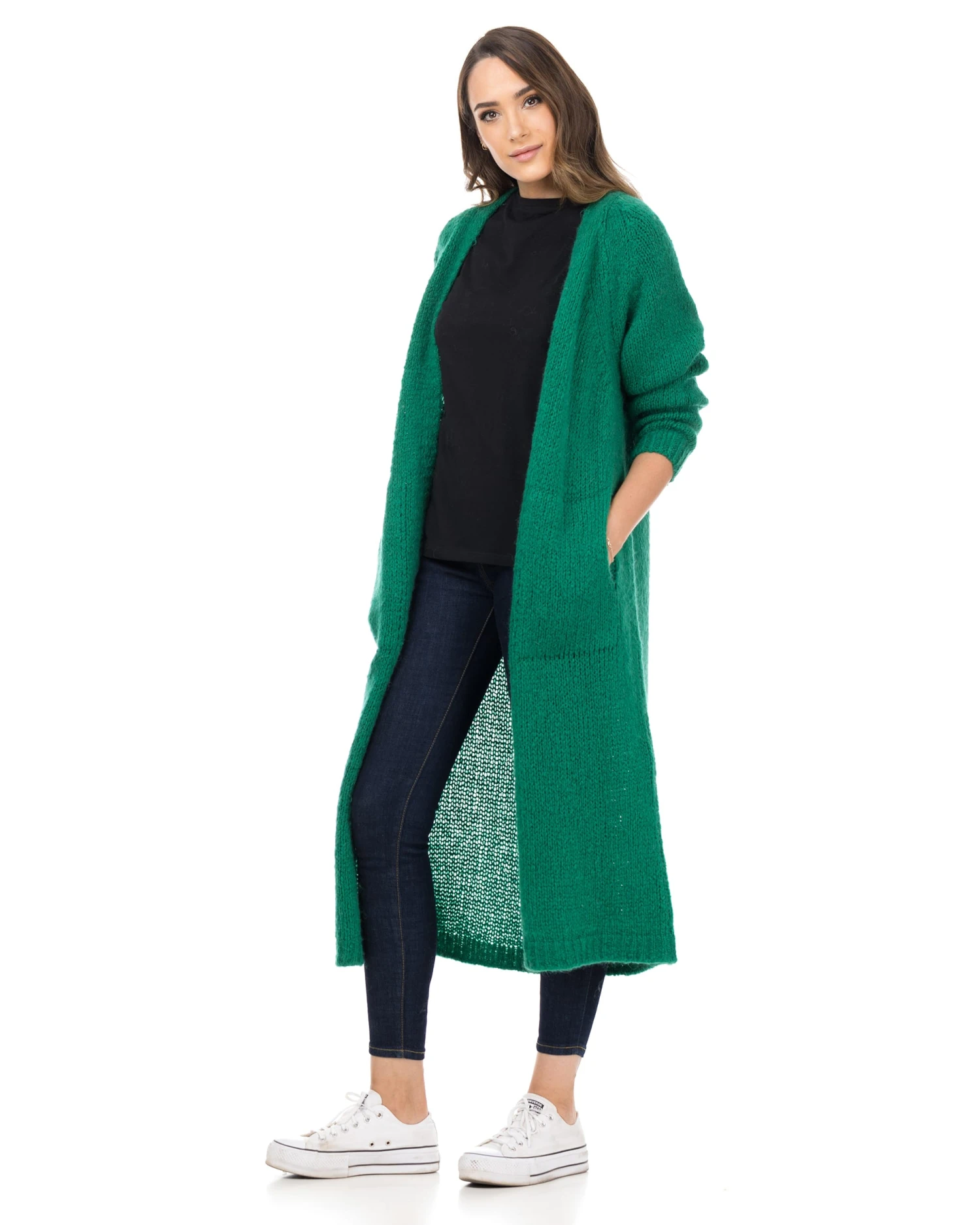Lange Strickjacke aus schwerem Strick mit Taschen.