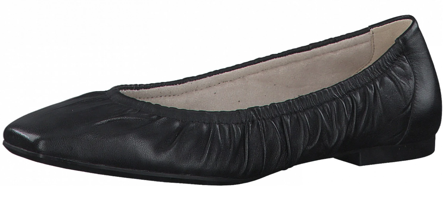 Die Ballerina 1-22103-28 aus dem Hause Tamaris im modischen Style. Das Obermaterial aus pflegeleichtem echten Leder sowie das Innenmaterial aus Textil sorgen für perfekten und komfortablen Tragekomfort zu jeder Jahres und Tageszeit. Der offene Schlupfverschluss sorgt für den leichten Einstieg und setzt diese Ballerinas auch noch stilvoll in Szene. Sie haben einen Blockabsatz mit einer Höhe von 1 cm und eine Laufsohle aus Gummi. Die Tamaris sind absolut toll mit allem kombinierbar.Der Absatz hat eine AntiSlide Dämpfungsfunktion von TamarisDie TOUCH-IT Mittelsohle sorgt für ein angenehmes und federleichtes Laufgefühl.