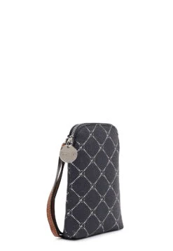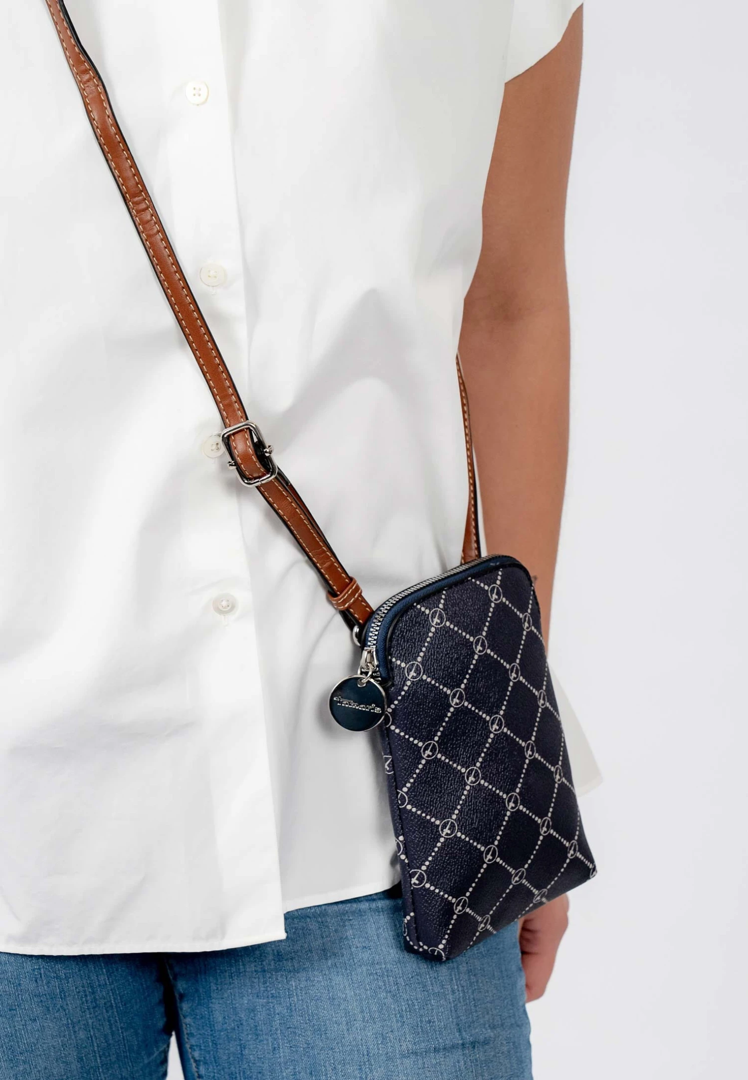 Tolle Accessoires für stilsichere Frauen Perfekt für alle Frauen, die gern ihren wichtigsten Besitz immer griffbereit haben. Mit Anastasia – dem schicken Handyetui aus Feinsynthetik mit Kette mit Anhänger – trägt jede Frau ihr wichtigstes Accessoire immer bei sich. Gefertigt ist das Modell, das sich mit einem Reißverschluss verschließen lässt, aus Feinsynthetik. Durch das Material ist es angenehm im Griff. Ein optisches Highlight ist die Umhängetasche mit geprägter Optik und dem Print-Design. Ob chic oder trendy, klassisch oder modern: Tamaris hat für jeden Style eine aufregende Auswahl an attraktiven Accessoires. Das Handyetui hat ein übersichtliches Hauptfach. Das Modell Anastasia ist von der Haptik eher fest, sodass Dinge, die nicht geknickt werden sollen, sicher transportiert werden. Für das süße Extra sorgt die Applikation mit der Kette mit Anhänger, die direkt ins Auge fällt. Mit einem angenehmen und längenverstellbaren Umhängeriemen wird das neue Lieblingsstück ganz locker als Umhängetasche getragen. Klein aber fein! In dieses kleine Handyetui passt alles, was man bei einer Abendveranstaltung braucht.