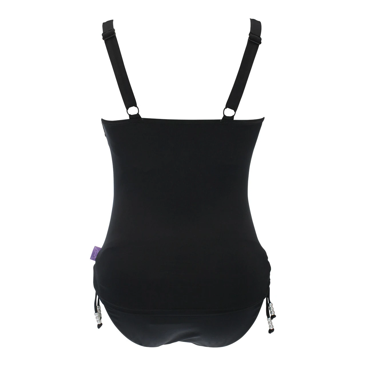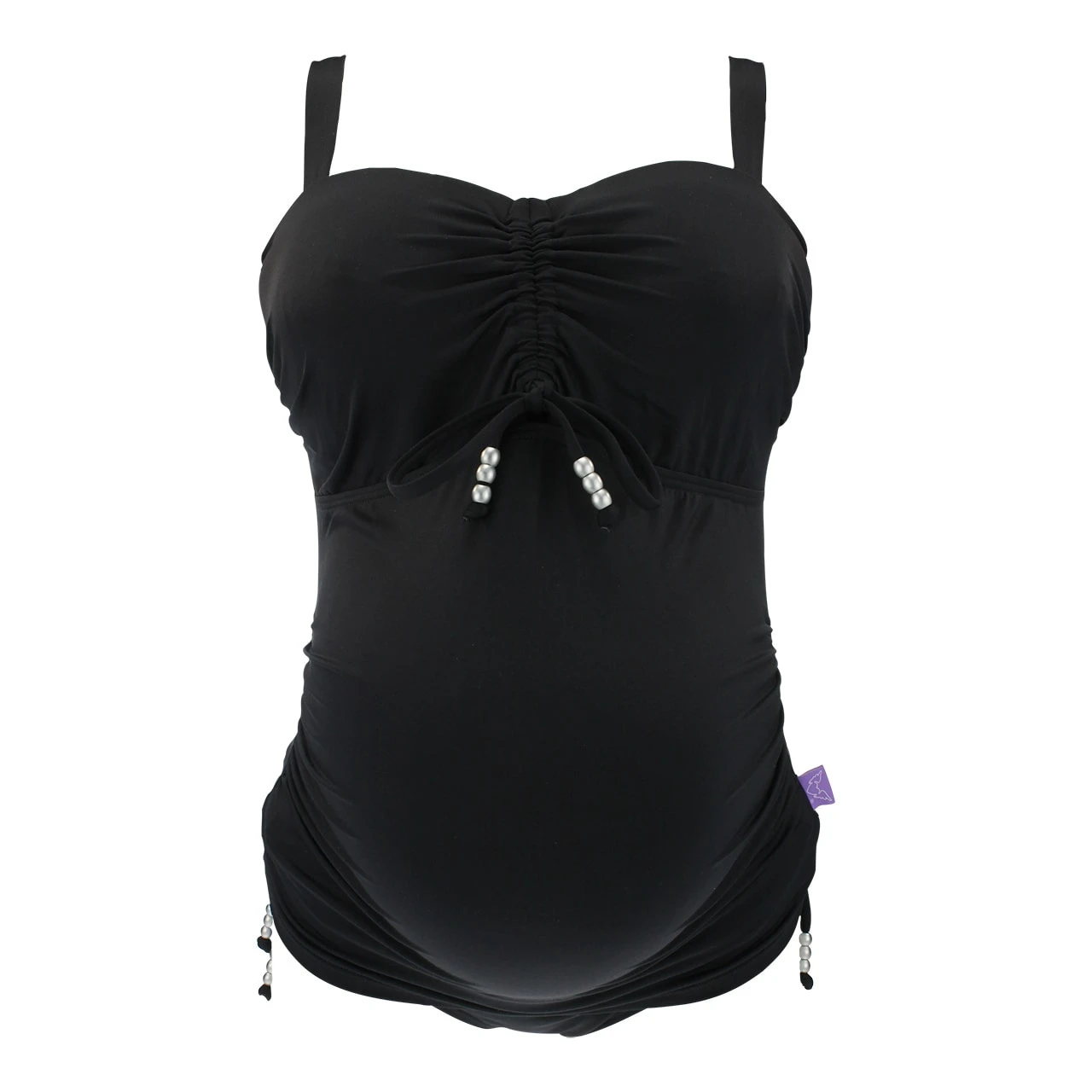 Unser Umstandstankini Bandeau-Top Cameron in F- und G-Cup Größen kommt wunderbar zur Geltung in unserem neuen edel-matten feinen Material in Schwarz und ist dezent dekoriert mit matt-silbernen Perlendetails.