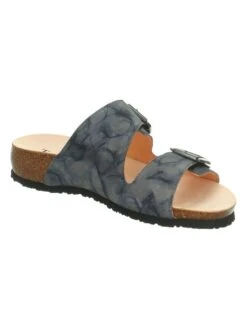 Think! Leder-Pantoletten „Julia“ In Grau/ Blau