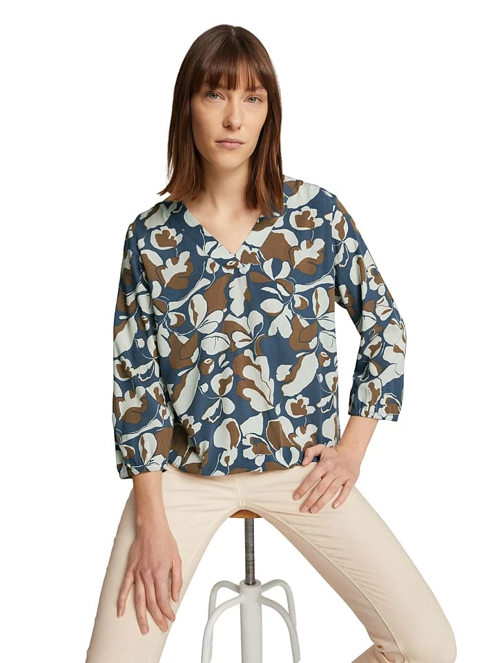 Tom Tailor Bluse In Dunkelblau/ Braun