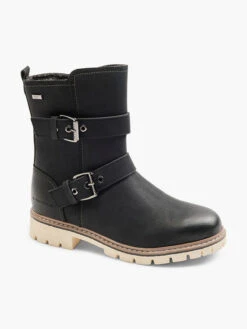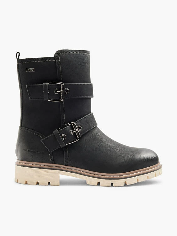 Boots Marke: Tom Tailor Farbe: Schwarz Wasserdichtigkeit: waterresistant Obermaterial: Textil, Synthetik Innenmaterial: Synthetik Außensohle: Synthetik Absatzhöhe: 3,5 cm