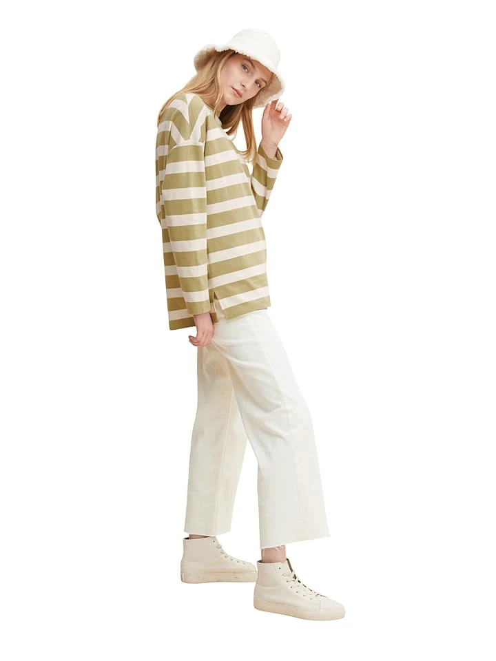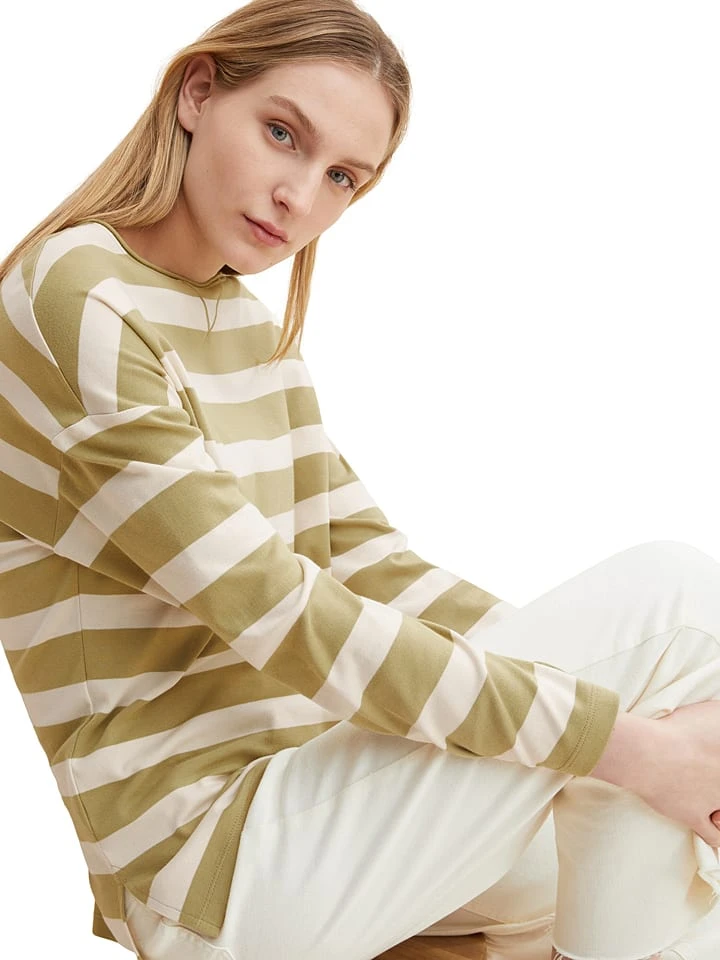 Tom Tailor Longsleeve In Oliv/ Creme