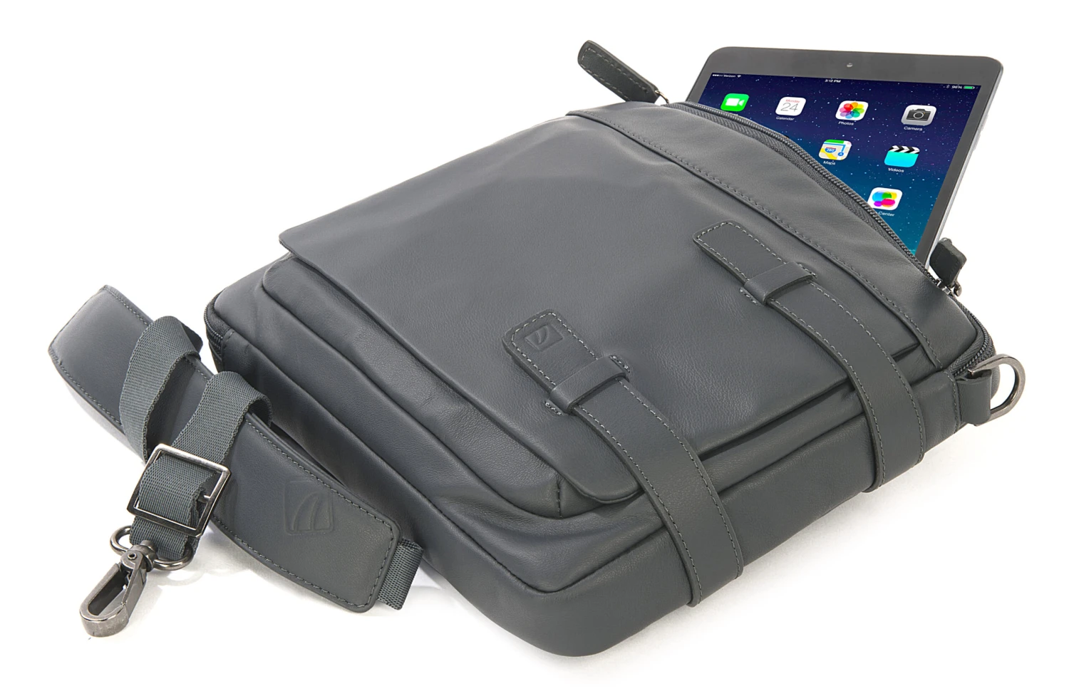 Sportlich elegante, kleinformatige Umhängetasche aus hochwertigem, fein genarbtem italienischem Leder. Mit leicht gepolstertem Tabletfach, passend für iPad mini oder Tablet bis 8 Zoll. Die kleine handliche Tasche hat einen abnehmbaren, in der Länge verstellbaren Schultergurt, ein gesichertes Außenfach und ein großes Reißverschlussfach innen. Es bietet neben dem Tablet übersichtlich Platz für Brieftasche, Smartphone, Kosmetik und z.B. ein Buch oder Schreibzeug. Der zweizügige Reißverschluss lässt sich über Eck bequem weit öffnen. Die Zipper sind aus Leder. Das Innenfutter ist farblich abgestimmt, weich und strapazierfähig. Der Reißverschluss ist unterfüttert.