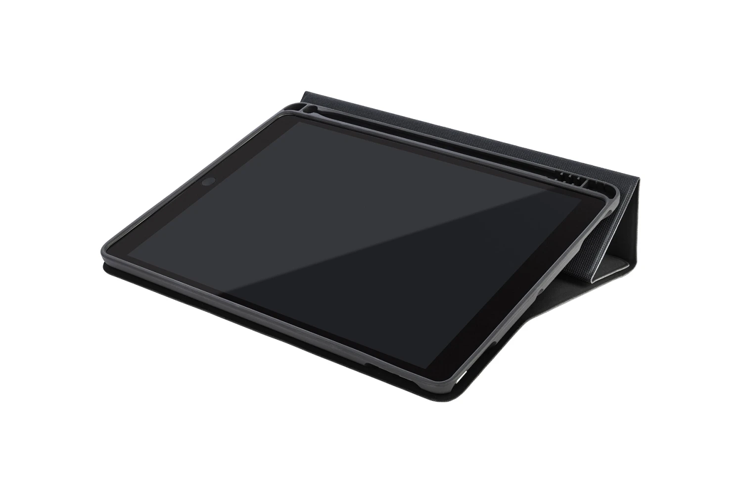 Schlankes, robustes Case mit variabler Standfunktion. Die Außenhaut ist angenehm griffig, rutschfest und pflegeleicht. Die Innenschale aus Silikon schützt das Gerät allseitig vor Stößen, Kratzern und Schmutz. Eine extra Aussparung für den Pencil, hält diesen griffbereit und beugt Verlust und Schäden unterwegs vor.