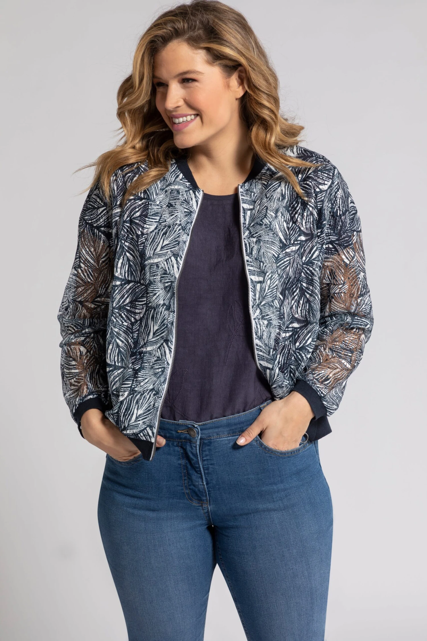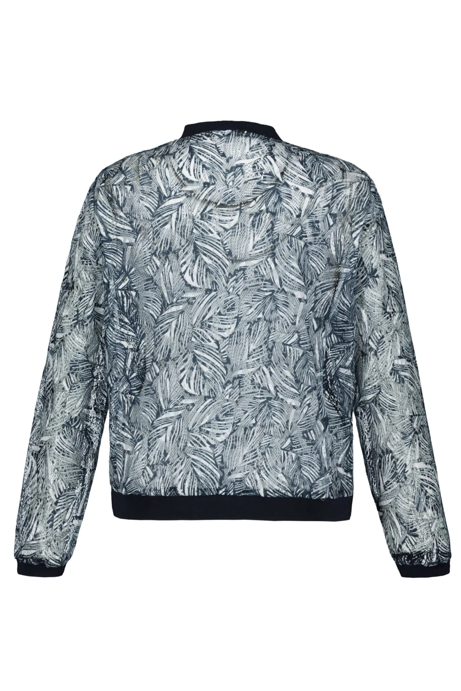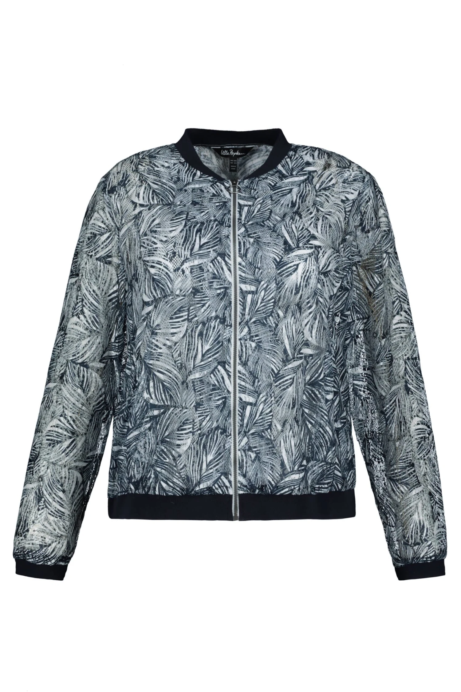 Spitzen-Blouson, transparent mit Blätterdruck. Sportiver Schnitt mit Collegekragen und Zipper. 2 Taschen, Langarm, Rippbündchen.